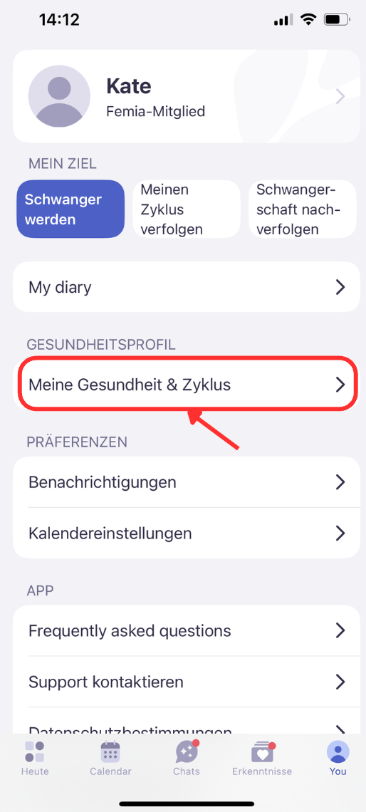 Tippen Sie auf „Meine Gesundheit und mein Zyklus“.