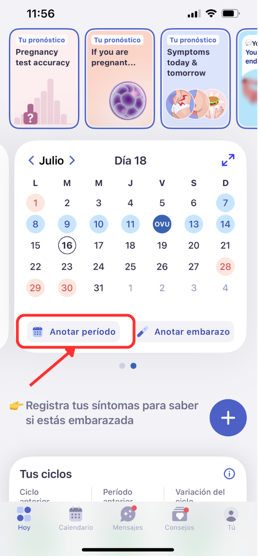 Para registrar tu período, toca “Anotar periodo” y elige las fechas en las que has tenido la menstruación: