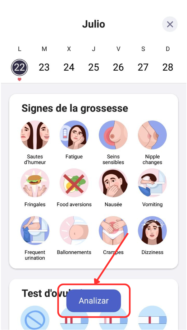 Para editar tus síntomas, solo tienes que abrir la pestaña de síntomas y elegir las respuestas que quieras editar. Después, pulsa “Analizar”.